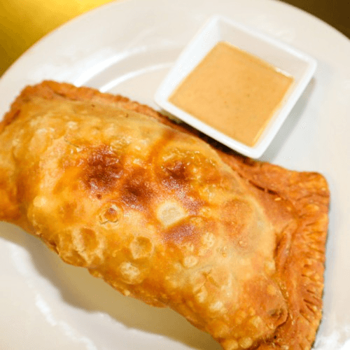 Flaky golden crispy filled with seasoned chicken, peppers, and onions-bursting with bold, savory Caribbean flavors.