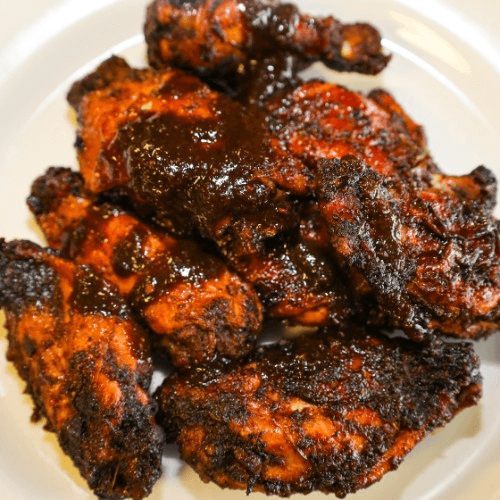 Eight buffalo style jumbo chicken wings tossed in spicy pepper BBQ