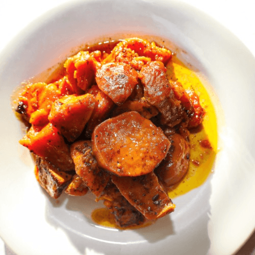 Tender slow-cooked sweet potatoes in a rich glaze with Caribbean spices.