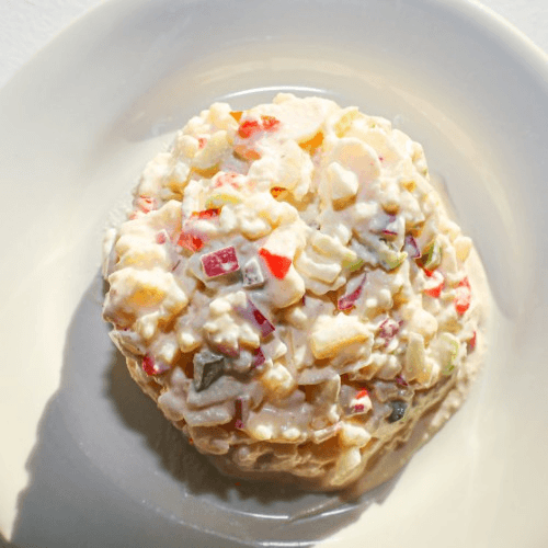 Tender potatoes folded into a creamy house made sauce with crisp celery, perfected onion, and vibrant red peppers.