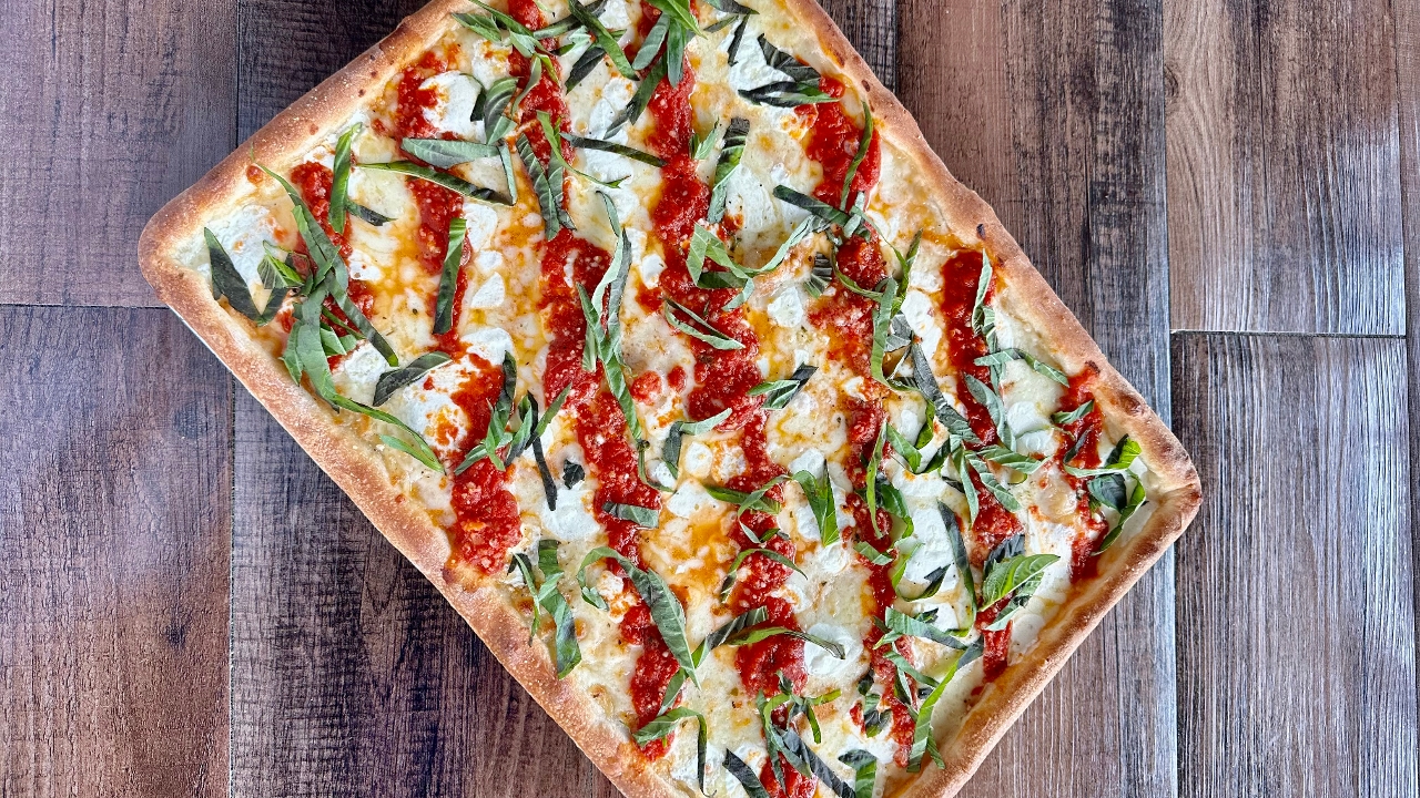 Fresh Mozzarella, Basil, Pecorino Romano, Garlic, EVOO, Pizza Sauce