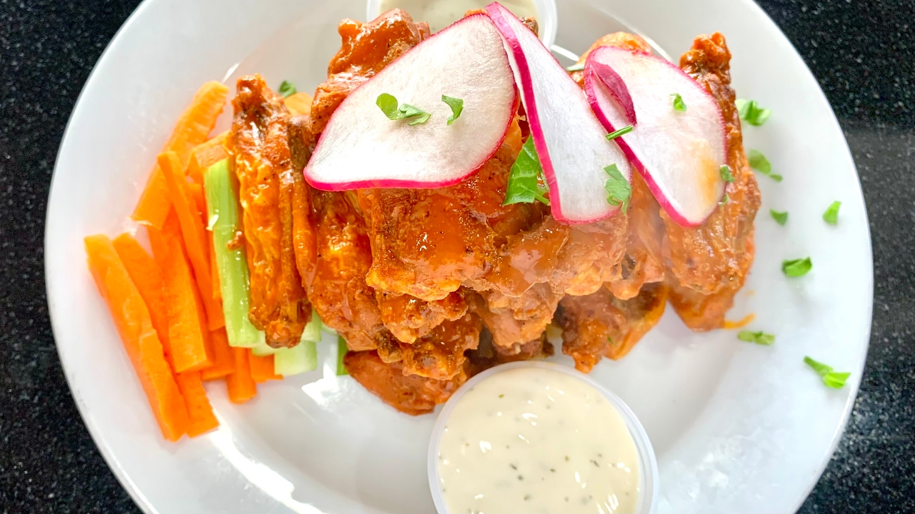 Buffalo, BBQ, Sweet Chili, or Plain Served with Celery & Blue Cheese OR Ranch