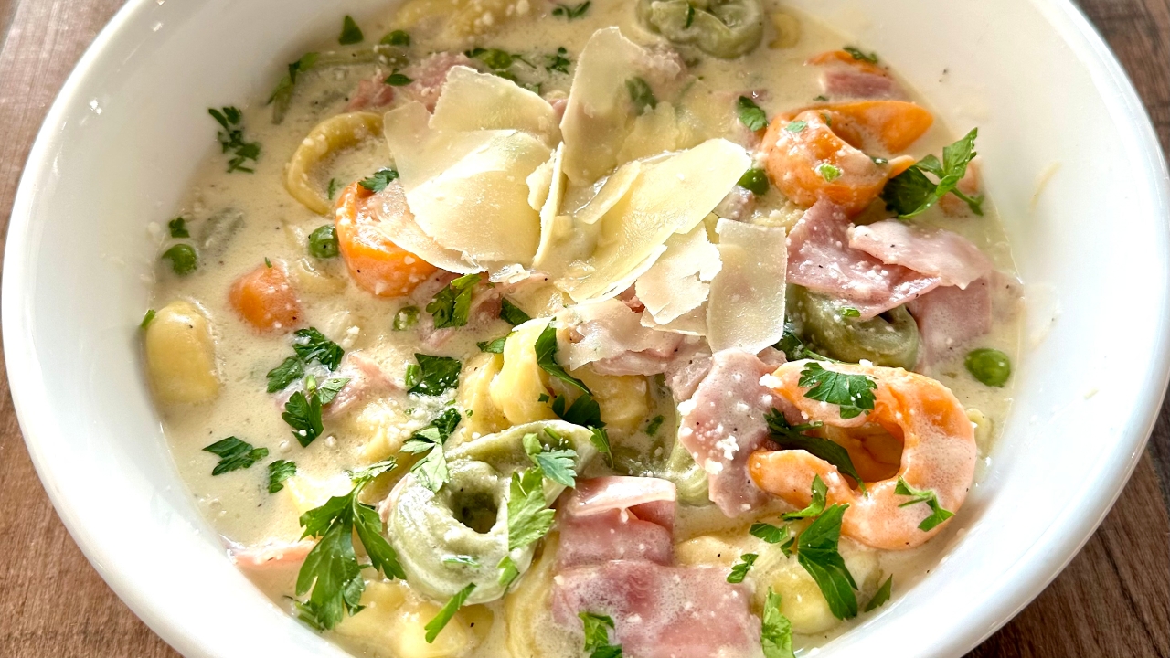 Classic Tortellini, Ham, Peas, Alfredo Cream Sauce