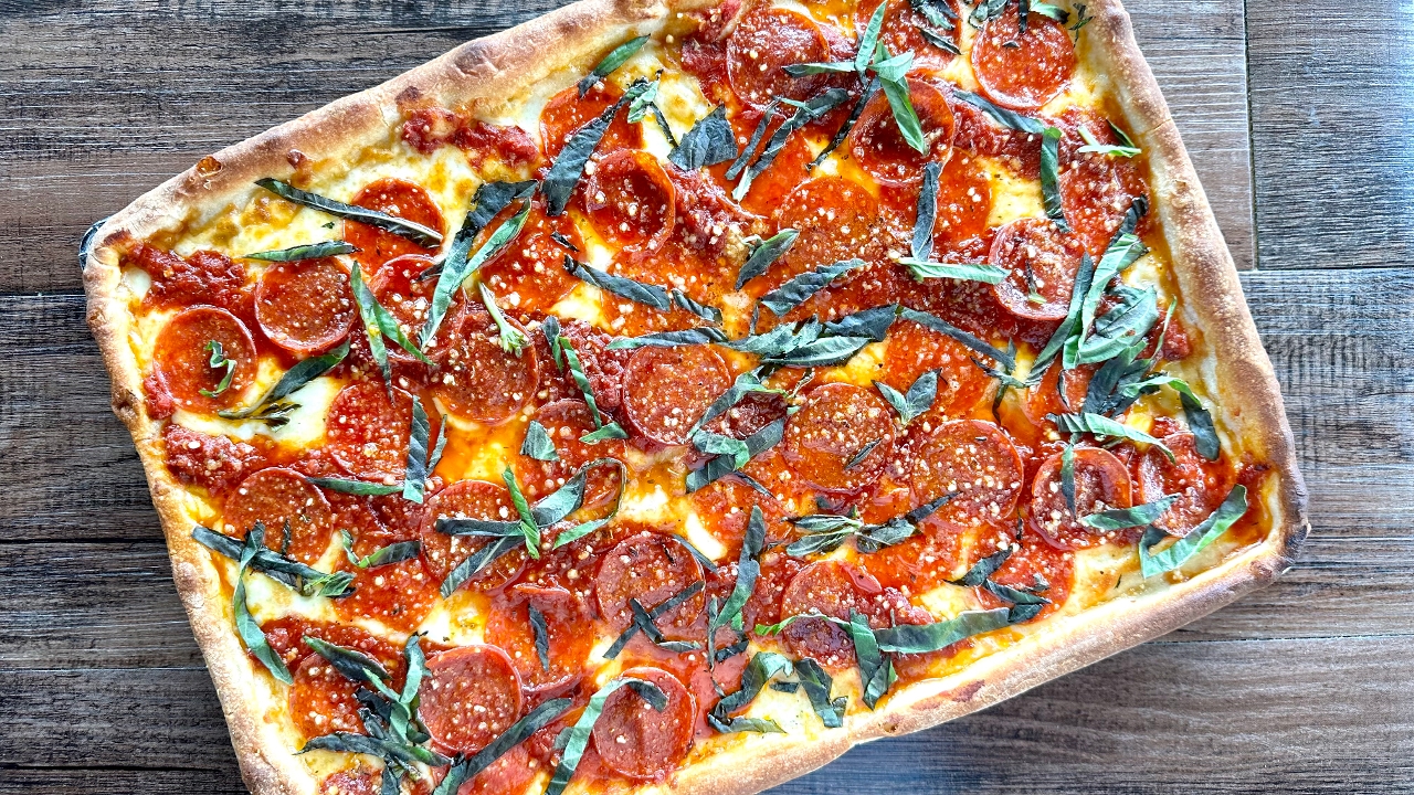 Pepperoni, Pickled Jalapeños, Drizzled Hot Honey, Mozzarella, Pizza Sauce