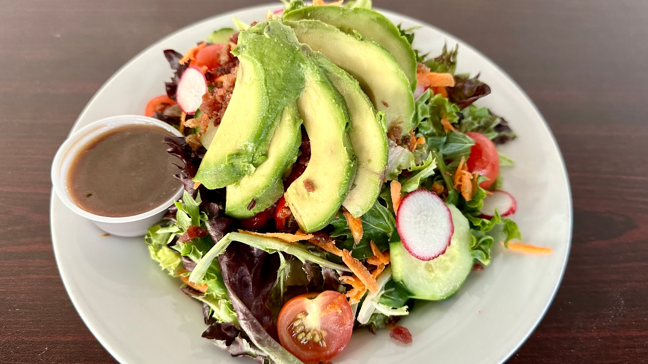 Mixed Greens, Tomatoes, Avocado, Cucumbers, Roasted Peppers, Bacon